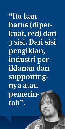 A: Betul. Itu kan harus (diperkuat, red) dari 3 sisi. Dari sisi pengiklan, industri periklanan dan supporting-nya atau pemerintah.