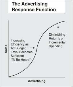 Hubungan antara advertising (kreatif dan media) dengan penjualan dapat diamati melalui kurva Advertising Response Curve. Kedua variabel ini (advertising dan sales) jelas saling berkaitan dan bisa dijelaskan secara logis. Kurva ini menjelaskan bahwa pesan yang diciptakan oleh tim kreatif tidak pernah bisa berdiri sendiri dalam menciptakan efek iklan termasuk sales. Sehebat-hebatnya materi kreatif tetap harus dikomunikasikan pada level TARPS yang efektif sehingga menciptakan incremental sales yang ideal. Harus dicegah terjadinya diminishing return of message response atau penambahan TARPs yang justru hanya menciptakan penjualan yang semakin kecil dan menurun.