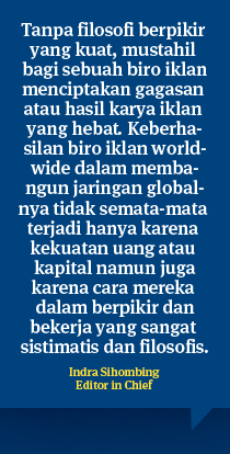 Mari kita melihatnya dari kacamata strategi persaingan. Advertising agency dikenal sebagai jenis usaha yang sangat mengandalkan kekuatan orang kreatif. Hampir di setiap perusahaan periklanan, terdapat orang-orang kreatif yang diandalkan dalam membangun dan mempertahankan kepercayaan pengiklan terhadap perusahaan tempat mereka bekerja. Aset utama perusahaan periklanan salah satunya adalah tim kreatif. Pada akhirnya, hasil karya merekalah yang disebarluaskan atau ditampilkan di berbagai media baik media lama maupun baru.